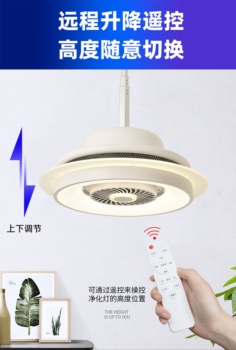 【功能】高亮LED照明、三色變光、遙控升降、雙漩渦出風口